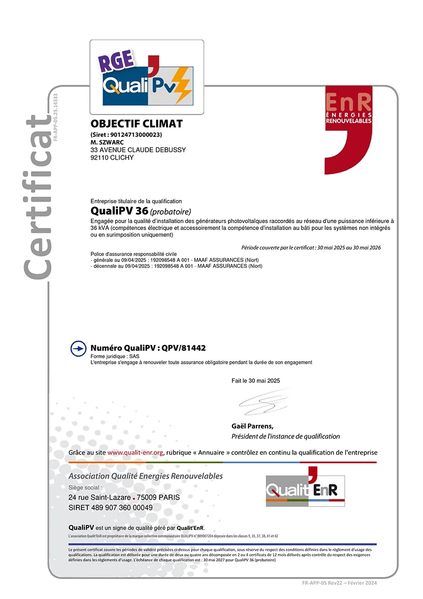 Pour bénéficier des principales aides financières de l’État (MaPrimeRénov’, Prime CEE, éco-PTZ), il est obligatoire de faire appel à une entreprise qualifiée RGE (Reconnu Garant de l’Environnement). Objectif Climat est certifié pour les travaux suivants :